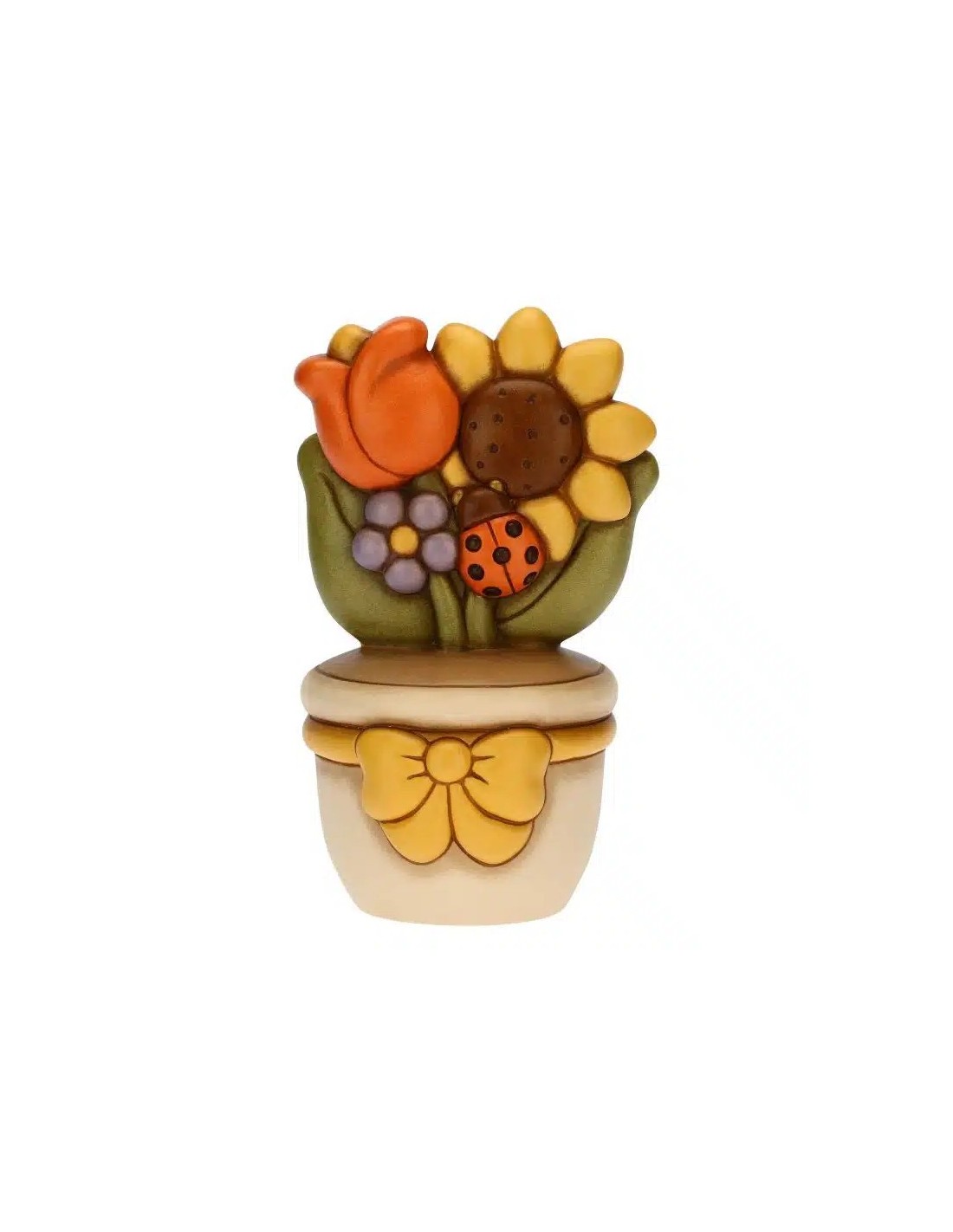 Vasetto soprammobile con coccinella e fiori, in ceramica. By THUN