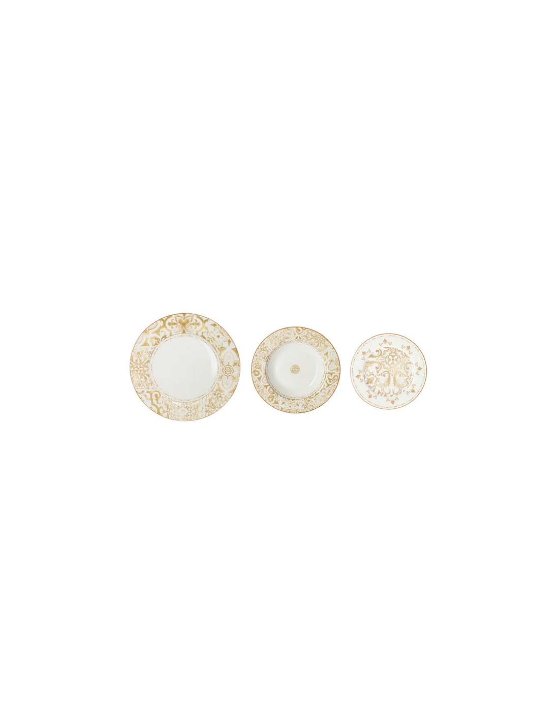 Composizione: 18 pezzi (6 piatti piani – 6 piatti fondi – 6 piattini)