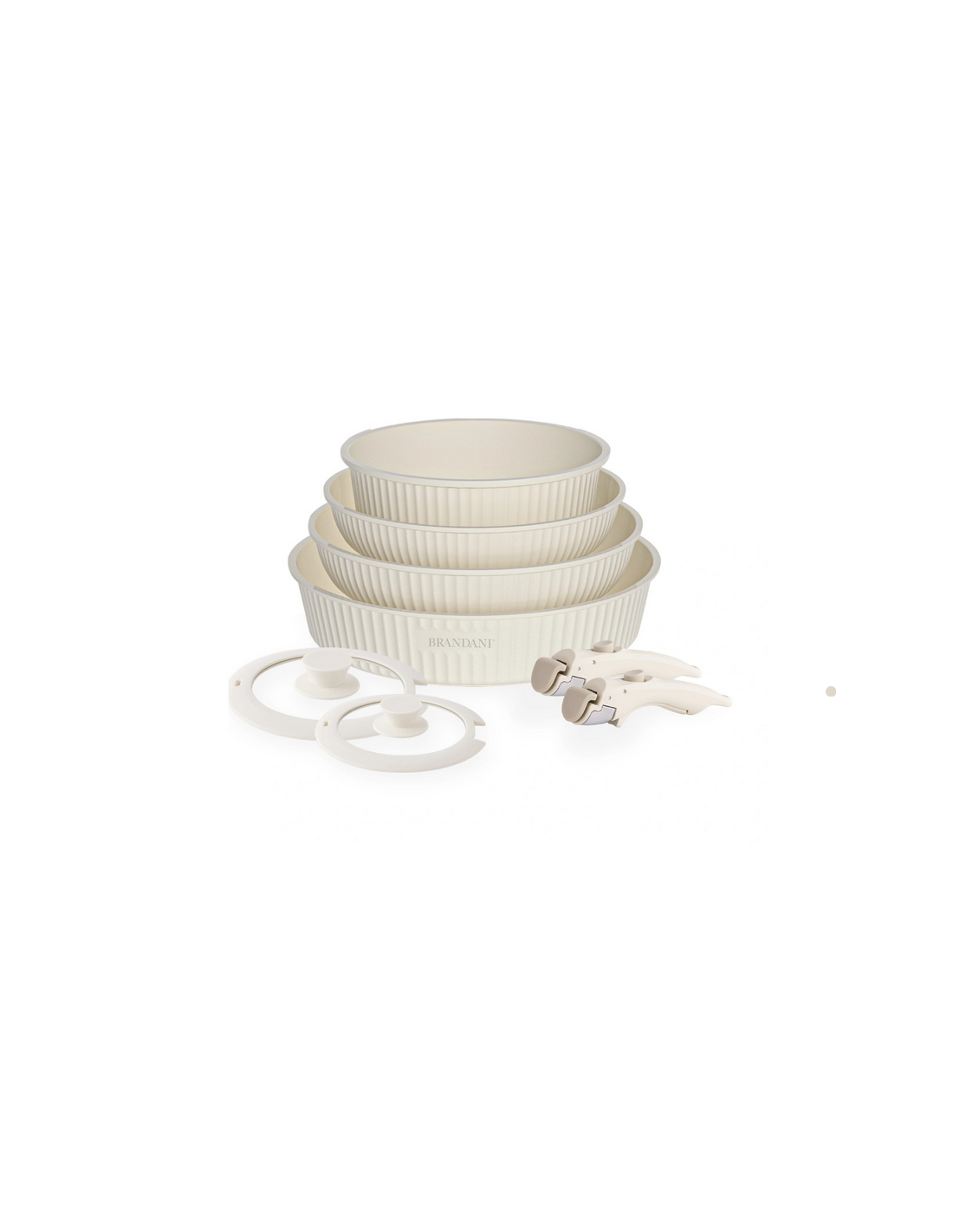 Il set Smart di Brandani unisce praticità ed eleganza contemporanea. Questa soluzione salvaspazio completa semplifica la quotidianità curando l'estetica. Le quattro padelle in alluminio di alta qualità sono impilabili e ottimizzano lo spazio in cassetti o pensili.
